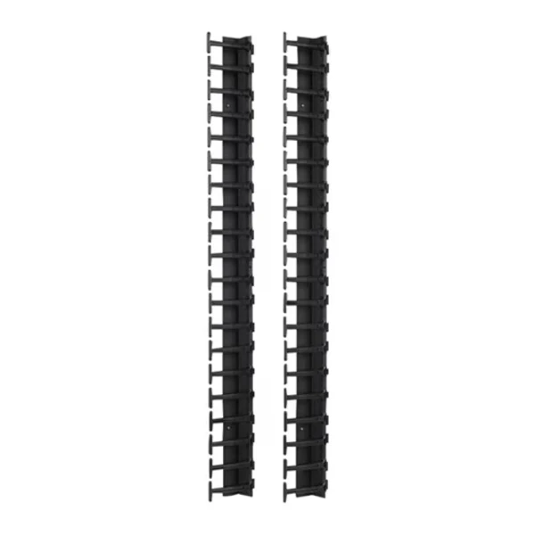 Габариты каждого органайзера составляют примерно 107 мм (4.21 дюйма) в ширину, 889 мм (35 дюймов) в высоту и 45 мм (1.77 дюйма) в глубину, что делает его оптимальным для интеграции в стандартные 42U стойки. Общий вес комплекта составляет около 4.81 фунта, что подчеркивает его прочную, но легкую конструкцию, не создающую излишней нагрузки на стойку.