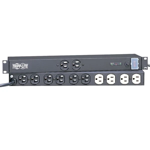 Устройство оснащено двенадцатью розетками NEMA 5-15R, удобно расположенными (две спереди и десять сзади) для оптимального подключения оборудования. Длинный 15-футовый (4.57 м) кабель питания NEMA 5-15P обеспечивает значительную свободу размещения, устраняя необходимость в дополнительных удлинителях. Для предотвращения случайного отключения питания предусмотрен защищенный выключатель с прозрачной блокирующей крышкой, что особенно важно для критически важного оборудования. Входное и выходное напряжение составляет 120 В переменного тока, с максимальным током линии 15 А и общей мощностью 1800 ВА. Встроенный автоматический выключатель обеспечивает дополнительную безопасность.
