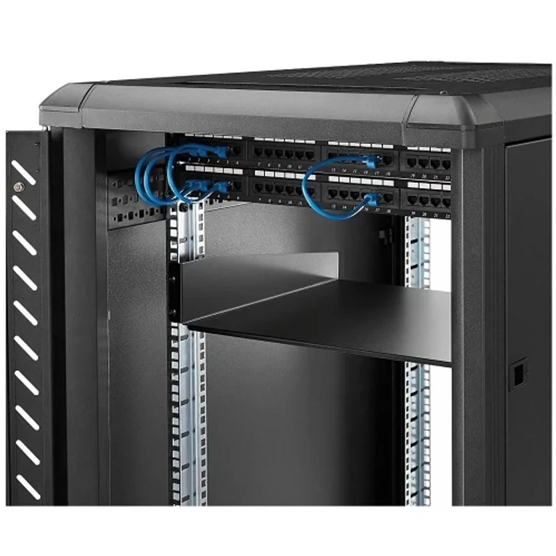 Универсальная фиксированная полка StarTech.com CABSHELF 2U для 19-дюймовых серверных стоек. Обеспечивает надежное размещение оборудования весом до 20 кг и улучшенную организацию кабелей, идеально для дата-центров, AV-систем и IT-инфраструктур.