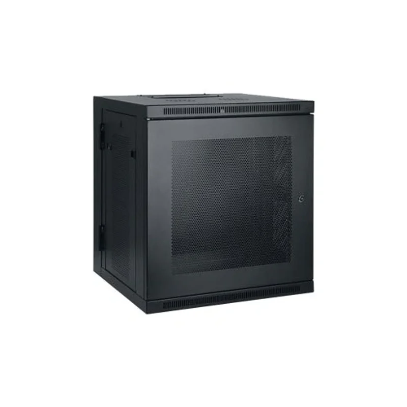 Шкаф SRW12US выполнен из высокопрочной стали с долговечным черным порошковым покрытием, что гарантирует его надежность и долгий срок службы. Максимальная нагрузочная способность составляет впечатляющие 200 фунтов (около 90.7 кг), позволяя размещать даже тяжелое оборудование. Одной из ключевых особенностей является откидная задняя панель на прочных петлях, которая обеспечивает беспрепятственный доступ к задней части оборудования и кабельной системе во время установки и обслуживания. Это значительно упрощает работу IT-специалистов и сокращает время простоя.