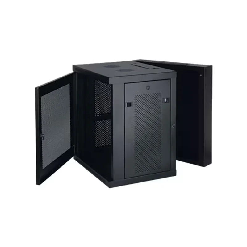 Безопасность вашего оборудования — приоритет. Двери и боковые панели шкафа надежно запираются, предотвращая несанкционированный доступ, повреждения или кражу. Для поддержания оптимального температурного режима и обеспечения свободного потока воздуха, передняя, верхняя, нижняя и съемные боковые панели оснащены вентиляционными отверстиями. Это критически важно для стабильной работы активного сетевого оборудования.