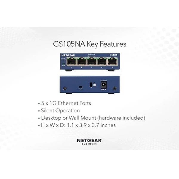 NETGEAR ProSafe GS105 разработан с учетом требований к долговечности и надежности. Его прочное металлическое шасси эффективно защищает внутренние компоненты от внешних воздействий, обеспечивая стабильную работу на протяжении всего срока службы. Безвентиляторная конструкция гарантирует абсолютно бесшумную работу, что делает его идеальным для размещения в офисных или жилых помещениях, где важен низкий уровень шума.