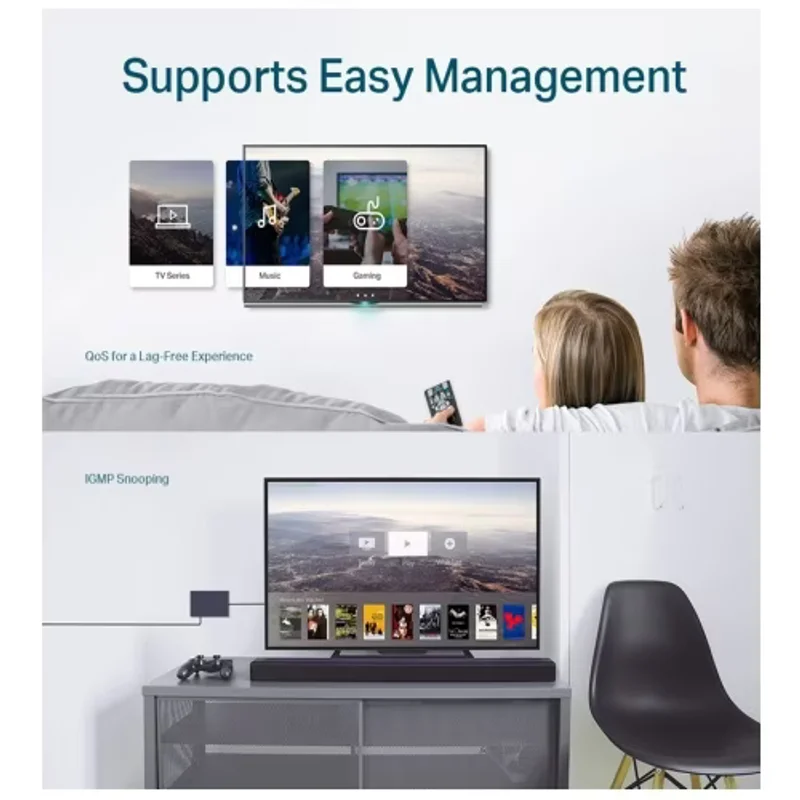 Каждый из 8 портов RJ-45 поддерживает Gigabit Ethernet, что критически важно для приложений, требующих высокой пропускной способности, таких как передача больших файлов, потоковое видео в высоком разрешении и онлайн-игры. Коммутатор работает на втором уровне (Layer 2), предлагая базовые, но эффективные функции для сегментации сети и управления трафиком. Хотя он не является полностью управляемым в традиционном смысле, его "Easy Smart" функционал предоставляет удобные возможности для оптимизации работы сети, включая поддержку IEEE 802.1p для приоритезации трафика (QoS) и IEEE 802.1Q VLAN для повышения безопасности и эффективности.
