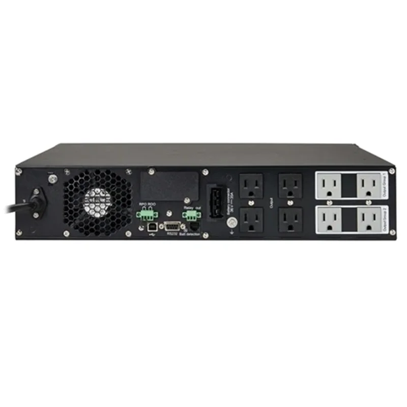 ИБП Eaton Tripp Lite SmartOnline SU1000RTXLCD2U разработан для максимальной универсальности. Его форм-фактор Rack/Tower позволяет устанавливать устройство как в стандартные 19-дюймовые стойки (занимая всего 2U), так и использовать его в качестве отдельно стоящего башенного ИБП. Компактные размеры (высота 3.5", ширина 17.5", глубина 12.5") и вес около 29 фунтов (13.15 кг) облегчают интеграцию в любую IT-среду. Для подключения оборудования предусмотрены 6 розеток типа NEMA 5-15R, а сам ИБП подключается к сети через вилку NEMA 5-15P. Батареи ИБП поддерживают горячую замену (Hot Swappable), что позволяет производить их обслуживание без отключения защищаемого оборудования. Типичное время перезарядки батарей составляет всего 3 часа. При полной нагрузке (900 Вт) ИБП обеспечивает до 4.8 минут автономной работы, а при половинной нагрузке — до 14 минут, предоставляя достаточно времени для корректного завершения работы систем или активации генератора.