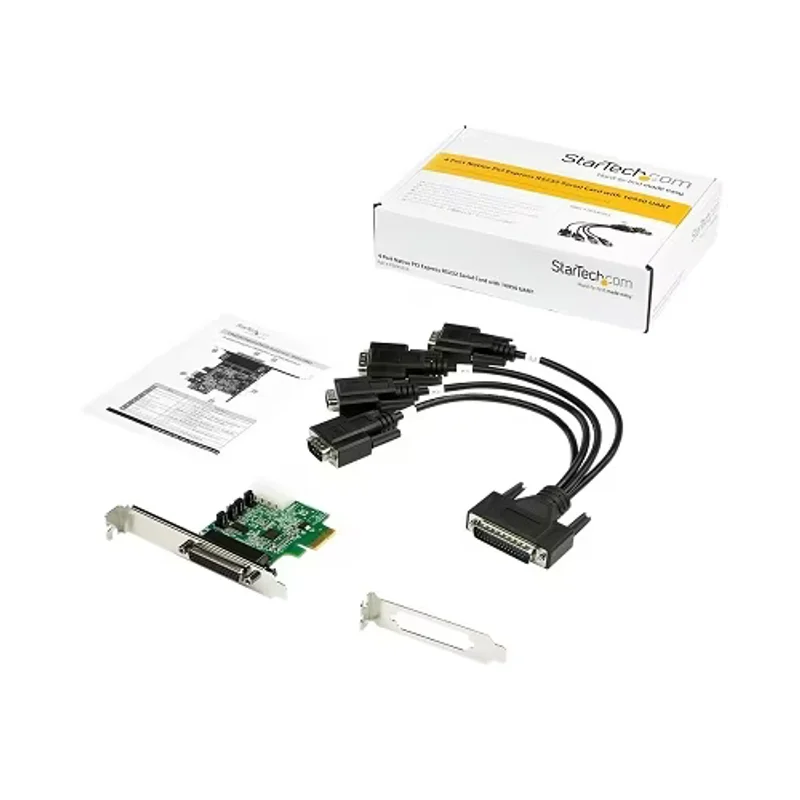 StarTech.com уделяет особое внимание качеству и удобству использования. Карта PEX4S953 поставляется в форм-факторе Plug-in Card и включает в себя как полнопрофильную, так и низкопрофильную скобу, что обеспечивает универсальность установки в различные типы корпусов, от стандартных рабочих станций до компактных серверов. В комплект поставки входит все необходимое для быстрой установки: сама 4-портовая последовательная карта, низкопрофильная скоба, удобный кабель-разветвитель для подключения всех четырех портов и краткое руководство пользователя. Производство в Тайване гарантирует высокие стандарты качества. StarTech.com подтверждает свою уверенность в надежности продукта, предоставляя пожизненную ограниченную гарантию, что является значительным преимуществом для профессионального оборудования.