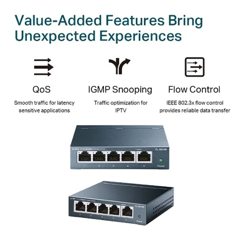 TP-Link TL-SG105 – это оптимальный выбор для тех, кто ищет надежное, быстрое и экономичное решение для расширения своей сетевой инфраструктуры. Он сочетает в себе высокую производительность Gigabit Ethernet, передовые технологии энергосбережения и исключительную простоту использования. Улучшите свою сетевую инфраструктуру уже сегодня, обеспечив стабильное и высокоскоростное подключение для всех ваших устройств! Приобрести TP-Link TL-SG105 можно с удобной и быстрой доставкой по всей территории Российской Федерации.