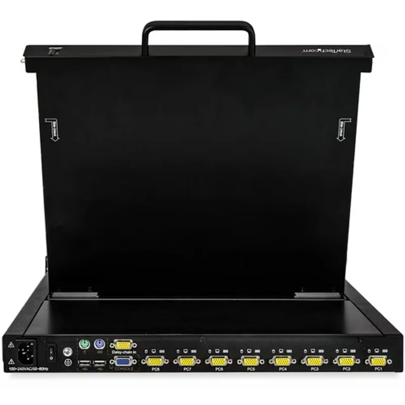 Представляем KVM консоль StarTech.com RKCONS1708K – высокоэффективное решение для централизованного управления до 8 серверами в вашей серверной стойке. Этот интегрированный KVM-переключатель с 17-дюймовым LCD-дисплеем, клавиатурой и тачпадом занимает всего 1U пространства, значительно упрощая администрирование и экономя ценное место в центрах обработки данных и серверных комнатах.