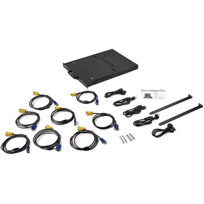 В комплект поставки входит все необходимое для немедленной установки и эксплуатации: сама 8-портовая стоечная KVM консоль с 17" дисплеем, 8 KVM-кабелей, 8 гаек M5, 8 винтов M5, 5 различных кабелей питания (NA, JP, UK, EU, ANZ) для глобального использования, 2 монтажные направляющие и краткое руководство пользователя. Поддерживаемая платформа – PC.