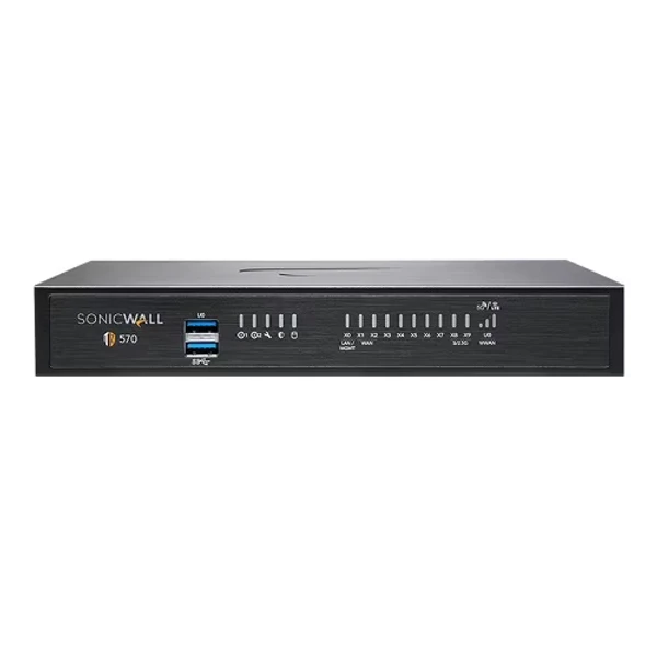 SonicWall TZ570W отличается высокой масштабируемостью благодаря плотности портов, включая восемь сетевых портов RJ-45 с поддержкой стандартов 10/100/1000Base-T и 5 Gigabit Ethernet, а также два слота SFP+ для оптоволоконных подключений. Устройство также оснащено портами USB для дополнительной гибкости. Встроенное и расширяемое хранилище объемом до 256 ГБ позволяет использовать различные функции, включая ведение журналов, отчетность, кэширование и резервное копирование прошивки. Опциональный второй блок питания обеспечивает дополнительную избыточность, повышая надежность системы.