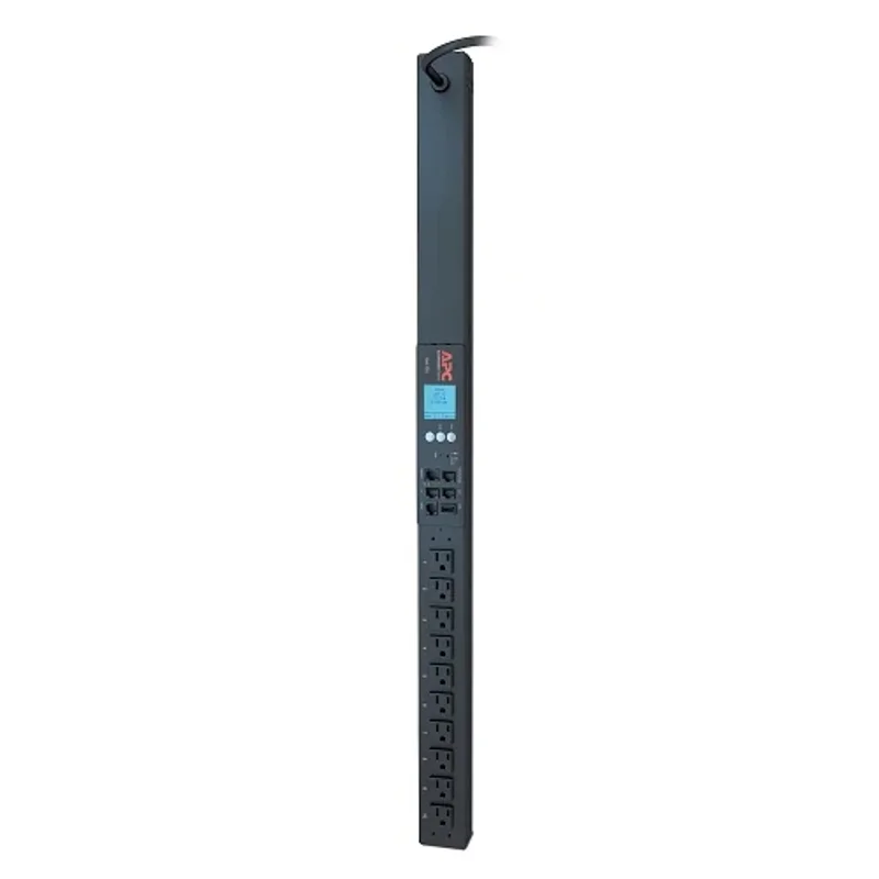 APC NetShelter Metered Rack PDU разработан для максимальной гибкости. Его форм-фактор 0U позволяет устанавливать устройство вертикально сбоку стойки, не занимая ценное пространство для монтажа активного оборудования. Это особенно важно для плотно упакованных IT-сред, где каждый юнит на счету. Длина кабеля питания составляет 9.84 фута (около 3 метров), что обеспечивает достаточную свободу при подключении к источнику питания. Черный цвет корпуса PDU гармонично вписывается в дизайн большинства серверных стоек.