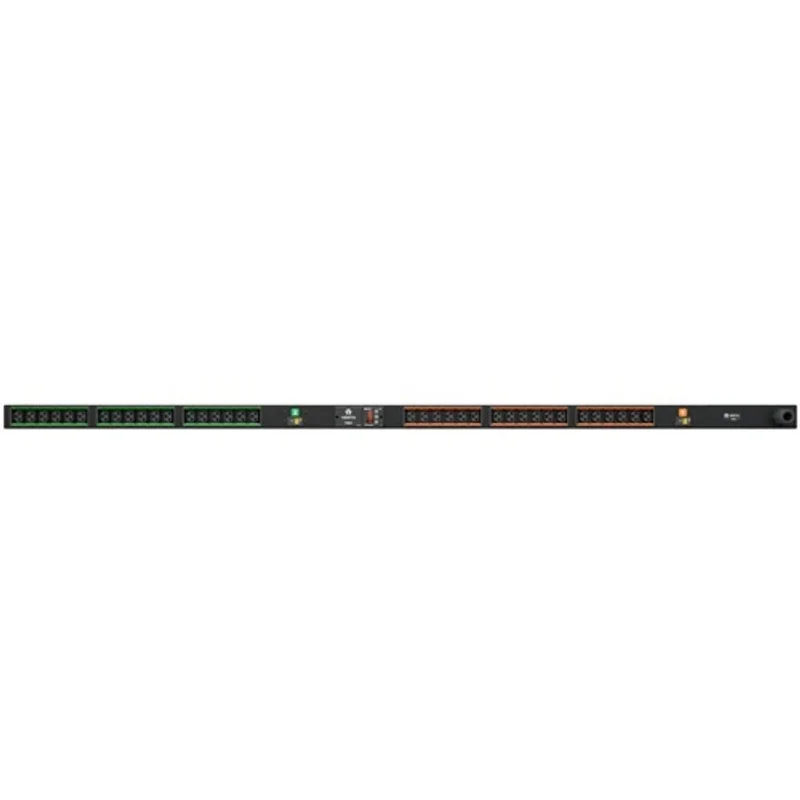 Физические характеристики PDU также оптимизированы для удобства использования в ЦОД. Устройство имеет форм-фактор 0U и предназначено для вертикального монтажа в стойку или шкаф, что позволяет эффективно использовать пространство. Его длина составляет 66.3 дюйма, а ширина и глубина – по 2 дюйма, что делает его компактным решением. Элегантный черный цвет с порошковым покрытием (Black Powder Coat) и общая черная цветовая гамма гармонично вписываются в любую серверную среду. PDU оснащен LED-дисплеем для удобного отображения ключевых параметров.