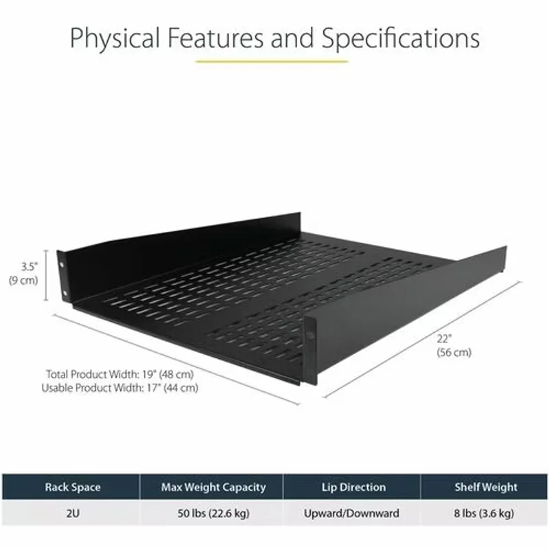 Полка для стойки StarTech.com CABSHELF22V 2U 22" вентилируемая фиксированная, нагрузка до 23 кг, для серверных шкафов и коммутаторов