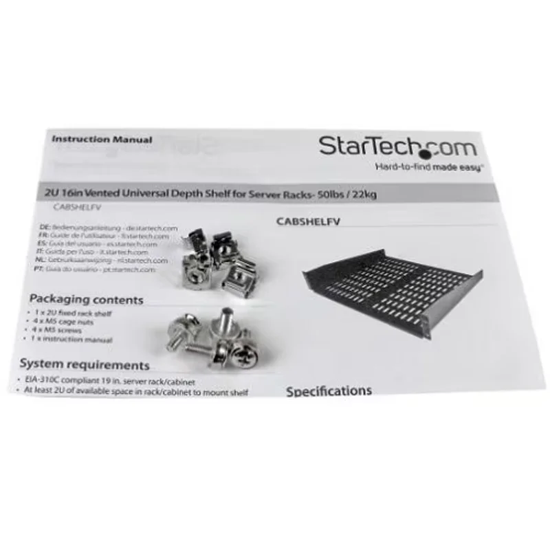 Полка для стойки StarTech.com CABSHELFV 2U 16" универсальная вентилируемая, фиксированная, до 23 кг