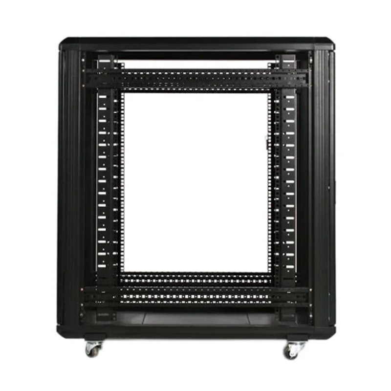 Эффективное пассивное охлаждение обеспечивается благодаря продуманной системе вентиляции. Шкаф оснащен вентилируемой стеклянной передней дверью и сетчатой задней дверью, что способствует свободному потоку воздуха и предотвращает перегрев оборудования. Прочная конструкция из алюминия, стекла, стали и стальной сетки гарантирует долговечность и надежную защиту содержимого. Шкаф имеет стандартную ширину 19 дюймов и высоту 43.8 дюйма (111.2 см), а его статическая грузоподъемность составляет впечатляющие 1763.70 фунтов (около 800 кг), что позволяет размещать даже самое тяжелое оборудование.