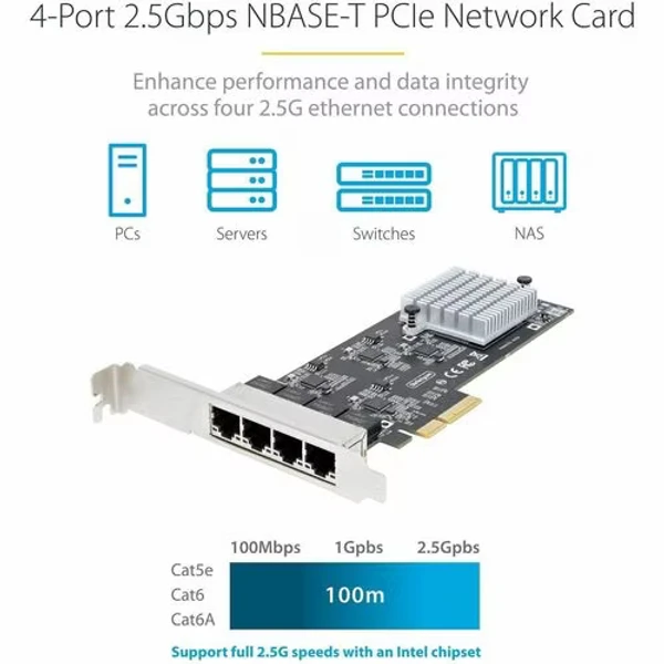 Сетевая карта StarTech.com 4-Port 2.5G NBASE-T PCIe с Intel I225-V, Quad-Port Ethernet, Multi-Gigabit NIC для серверов