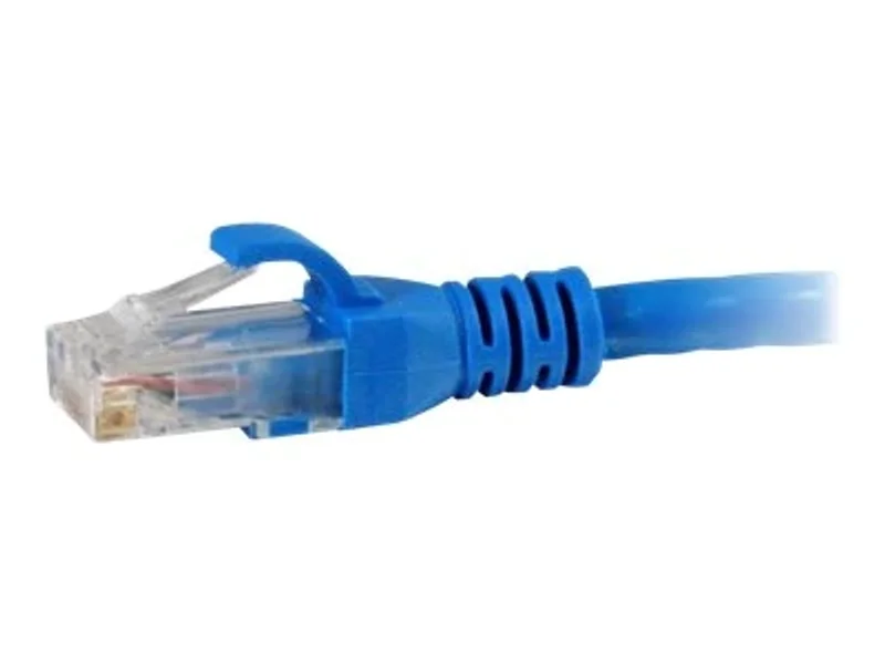 Одной из ключевых особенностей является наличие литого, беззацепного (snagless) ботинка. Эта конструкция предотвращает случайные зацепления кабеля во время прокладки и извлечения, защищая защелку разъема RJ-45 от повреждений. Дополнительно, ботинок обеспечивает усиленную защиту от натяжения, продлевая срок службы кабеля даже при интенсивной эксплуатации. Синий цвет кабеля позволяет легко идентифицировать и систематизировать сетевые подключения, что упрощает управление инфраструктурой.