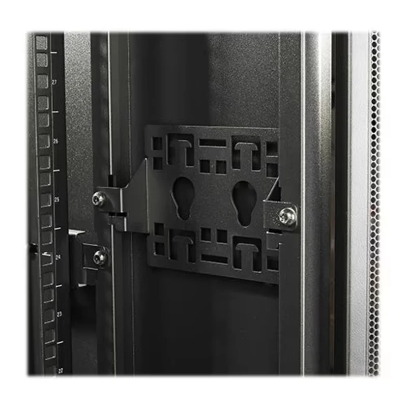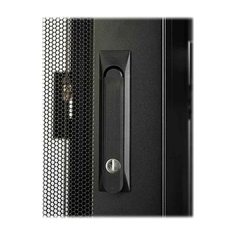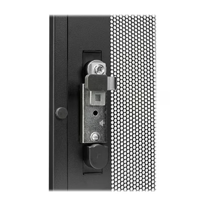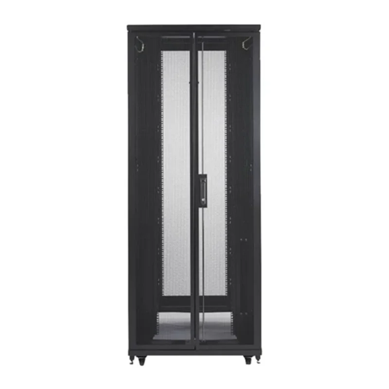Двери шкафа спроектированы для максимального удобства и эффективности. Реверсивная плоская передняя дверь обеспечивает 69% вентиляции, поддерживая оптимальный температурный режим внутри. Задние двери выполнены раздельными, что облегчает доступ к оборудованию в условиях ограниченного пространства. В комплект поставки входят аксессуары для монтажа, включая кронштейны для PDU и систем кабель-менеджмента, а также байонетное оборудование, двери, ключи (с одинаковыми ключами для дверей и боковых панелей), регулируемые ножки, монтажное оборудование, предустановленные ролики, 4 болтовых кронштейна, крыша и боковые панели. Шкаф поставляется полностью собранным и легко проходит через стандартные дверные проемы, что значительно упрощает его транспортировку и установку.