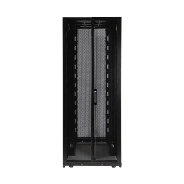 Для поддержания оптимальной температуры оборудования, шкаф SR48UBDPWD оснащен массивной системой вентиляции спереди назад. Более 65% перфорации дверей обеспечивает превосходный воздушный поток, соответствующий или превосходящий требования производителей серверов. Удобная система заземления гарантирует безопасность: все компоненты заземлены на раму шкафа, которая включает несколько подключений для заземления объекта. Передние и задние двери оснащены быстросъемными заземляющими проводами. Для удобства прокладки кабелей предусмотрено открытое дно и верхняя панель с большими отверстиями для кабелей, которую можно снять без инструментов за считанные секунды, не отключая при этом кабели.