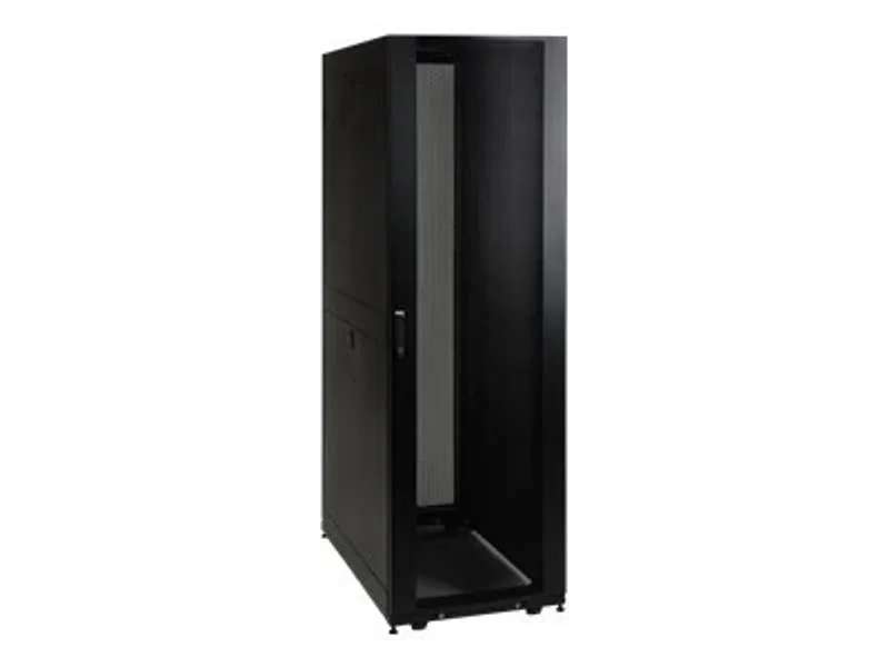 Эффективное охлаждение критически важно для поддержания стабильной работы IT-инфраструктуры. Стоечный шкаф SR42UBMD оснащен дверями с массивной перфорацией, обеспечивающей более 65% открытого пространства. Это гарантирует превосходную сквозную вентиляцию (спереди назад), которая соответствует или превосходит требования большинства производителей серверов. Такая конструкция способствует оптимальному отводу теплого воздуха и притоку холодного, поддерживая идеальный температурный режим внутри шкафа. Верхняя панель также имеет вентиляционные отверстия для конвекционного отвода тепла и может быть снята без инструментов для быстрого доступа или прокладки кабелей. Шкаф полностью совместим с конфигурациями горячих/холодных коридоров, что делает его универсальным выбором для масштабируемых ЦОД.