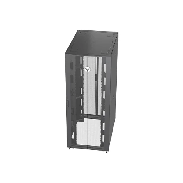 Стоечный шкаф Vertiv VR Rack 42U TAA Compliant – Черный, 3000 фунтов статической нагрузки, безинструментальная установка