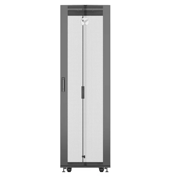 Для обеспечения легкого доступа к оборудованию и его безопасности, шкаф оснащен раздельными боковыми панелями с одним запирающимся защелкивающимся механизмом, что позволяет одному человеку легко устанавливать и снимать их. Передняя дверь и боковые панели имеют ключевые замки, обеспечивая надежную защиту от несанкционированного доступа. Двери являются реверсивными, что дает гибкость при размещении шкафа в различных условиях. Встроенные решения для кабель-менеджмента помогают поддерживать порядок внутри шкафа, предотвращая запутывание кабелей и улучшая циркуляцию воздуха.
