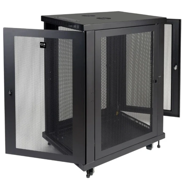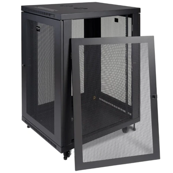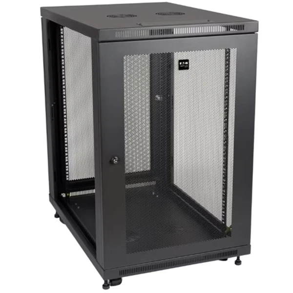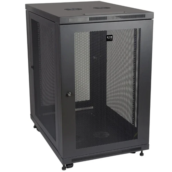 Стойка Eaton Tripp Lite SmartRack SR18UB 18U 19" — универсальный серверный шкаф с регулируемой глубиной, грузоподъемностью 1000 фунтов и соответствием PCI DSS.