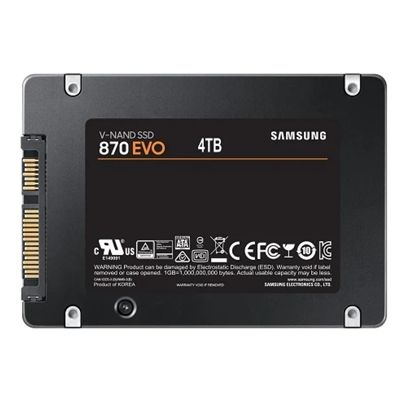 Твердотельный накопитель Samsung 870 EVO MZ-77E4T0B/AM 4 ТБ, 2.5" SATA III, внутренний SSD с скоростью чтения до 560 МБ/с и записью до 530 МБ/с для ПК и ноутбуков